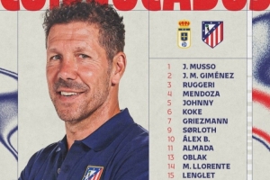 马竞客战奥维耶多大名单:阿尔瓦雷斯领衔锋线,瑟尔洛特在列