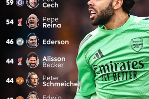 体育资讯3月5日讯 英超第29轮比赛,阿森纳在客场以1-0的比分小胜布莱顿。本场比赛,枪手门将拉亚迎来自己在英超中的第100次出场,他实现了43次零封追平范德萨,并列联赛历史第6位。