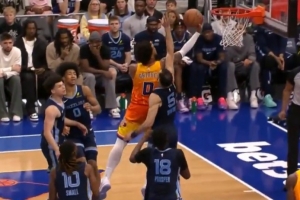下一篇: 慢了一点点!卡特·布莱恩特起飞滑翔单臂炸筐 可惜超时在先