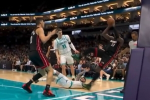 上半场,黄蜂主将拉梅洛·鲍尔用手扒了热火球星阿德巴约脚后跟致其倒地受伤,后者返回更衣室,本场回归成疑!