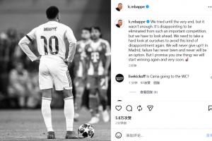 体育资讯04月17日讯 皇马昨夜在欧冠1/4决赛被拜仁淘汰,姆巴佩赛后发表社媒。